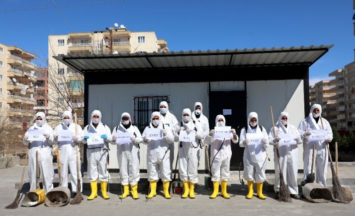 Temizlik ve dezenfekte çalışması öncesi ellerindeki “Biz sizin için temizliyoruz, evde kal Diyarbakır ve evde kal Türkiye” dövizleriyle vatandaşlara mesaj veren görevlilere, vatandaşlar alkışlarla, araçlarla yoldan geçenler ise korna çalarak destek verdi.
