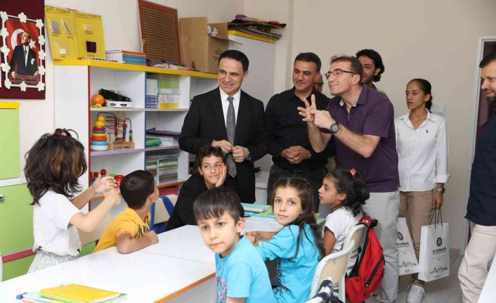 Ziyarette okul yöneticilerinden bilgi alan Sosyal Hizmetler Daire Başkan Bayram Sezgin, sınıfları tek tek gezerek işitme engelli öğrencilerle vakit geçirdi. Sosyal Hizmetler Daire Başkanlığına bağlı ekipler tarafından sınıflardaki işitme engelli öğrencilere, okula dönüş setleri ve kırtasiye malzemeleri hediye edildi.