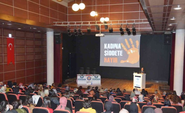 Açılış konuşmasını yapan DÜKSAM Müdürü Prof. Dr. Serda Em, BM Genel Kurulunun 1999 yılında 25 Kasım gününü Kadına Yönelik Şiddete Karşı Uluslararası Mücadele Günü olarak ilan ettiğini belirtti. Prof. Dr. Serda Em, "Dünyada ve ülkemizde kadına yönelik her türlü şiddetin önlenmesi konusunda bilimsel çalışmalar yapmak, çeşitli etkinlikler düzenlemek, bu sayede farkındalık oluşturmak üniversitelerin görevlerindendir. Bu bilinçle üniversite ve kadın sorunları araştırma merkezi olarak valilik, belediye ve sivil toplum kuruluşlarının iş birliğiyle kadına karşı şiddet konusunda toplumu bilgilendirmek ve duyarlılık oluşturmak, toplumsal bilinçlenmeyi geliştirmek üzere bu etkinliği düzenledik” dedi.