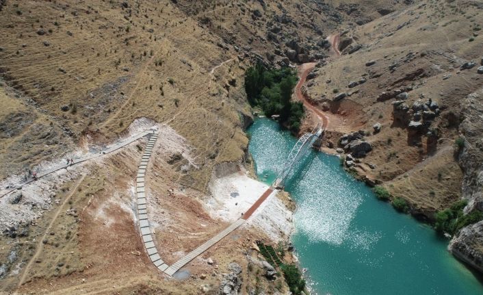 Ekipler, yerli ve yabancı turistlerin alanı daha rahat ziyaret edebilmelerini sağlamak için 5 bin metrekare alan içerisine 1,8 kilometre uzunluğunda, zeminin ahşap travers ve kiremit irmiğinin kullanılan yürüyüş yolunun yüzde 65’ini tamamladı.