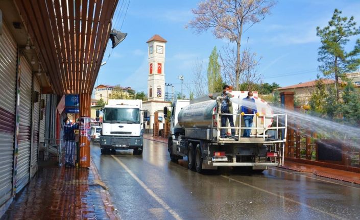 Çalışmalar kapsamında ekipler tarafından, ilçedeki yoğun cadde ve sokaklar tazyikli su ile yıkayarak dezenfekte edilirken, sokağa çıkma kısıtlamasını fırsat bilerek yol, kaldırım, hastane, ATM, durak, bank ve işyerlerinin giriş-çıkış noktalarında ayrıntılı dezenfekte çalışması yürütüldü.