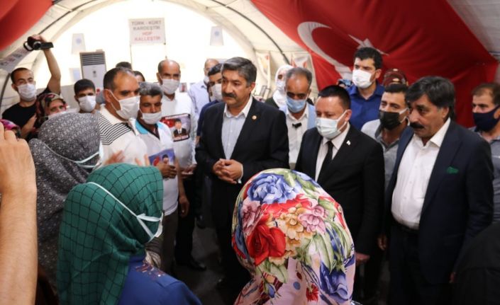 Diyarbakır’da çocuklarının terör örgütü PKK tarafından dağa kaçırılmasından HDP’yi sorumlu tutan ailelerin evlat nöbetine AK Parti MKYK üyesi Abdurrahman Kurt, Bağlar Belediye Başkanı Hüseyin Beyoğlu destek ziyaretinde bulundu.
