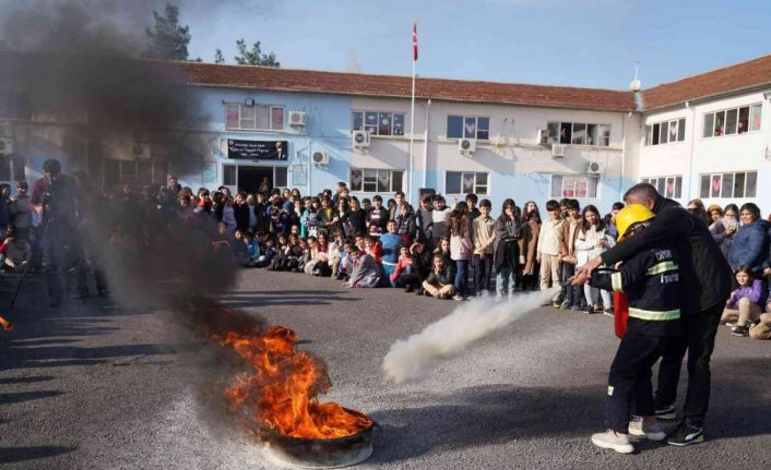 İtfaiyecilerden ortaokul öğrencilerine yangın eğitimi