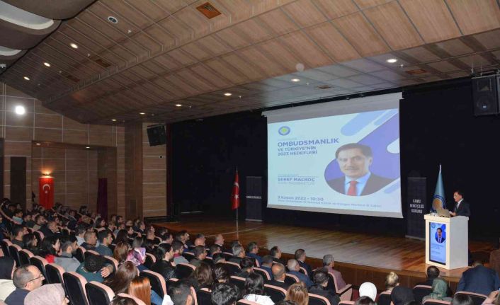 Rektör Prof. Dr. Mehmet Karakoç’un açılış konuşmasının ardından Başdenetçi Şeref Malkoç verdiği konferansta Kamu Başdenetçiliği Kurumunun çalışmaları ve görev alanları ile Türkiye’nin 2023 yılı hedeflerini anlattı. Ombudsmanlık kavramı, kurum işleyişi ve Türkiye’nin 2023 hedefleri gibi konuların konuşulduğu konferans, öğrencilerimiz tarafından büyük ilgi gördü.
