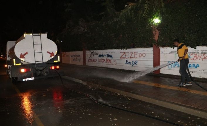 Kayapınar Kaymakamı ve Belediye Başkan Vekili Ünal Koç’un talimatları doğrultusunda, Temizlik İşleri Müdürlüğünce devam ettirilen temizlik çalışmaları kapsamında gece saatlerinde cadde ve sokaklarda 20 kişilik ekiple yıkama yapıldı. Temizlik İşleri Müdürünün bizzat katıldığı yıkama çalışmalarında, 6 temizlik aracı kullanılırken, 20 temizlik personeli görev yaptı. Gece geç saatlere kadar devam eden yıkama çalışmaları vatandaşlar tarafından takdir gördü. İlçenin belirli bölgelerinde başlatılan yıkama çalışmalarının ilçedeki tüm sokak ve caddeleri kapsayacağı bildirildi.