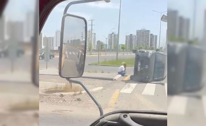 Diyarbakır’ın Kayapınar ilçesinde kaza geçiren sürücü, yan yatan kamyonetinin başında bekledi.