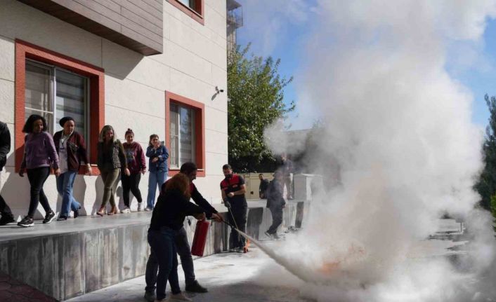 Tatbikatta yangın önleyici tedbirler ve olası yangın sırasında yapılması gerekenler itfaiye ekiplerince personele ve öğrencilere anlatıldı. Yangına müdahale eğitimi verilen etkinlikte itfaiyeciler, yangına müdahale aşamalarını uygulamalı olarak gösterdi.