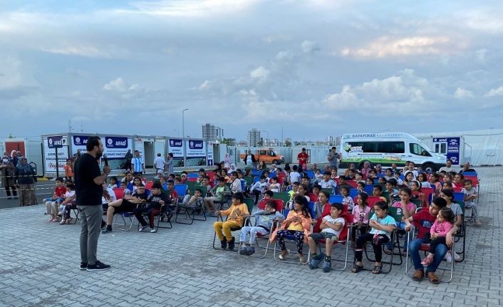Diyarbakır’da Kayapınar Belediyesi, konteyner kentte yaşayan depremzede 350 çocuğu "Masal Atölyesi" eğlendirdi.