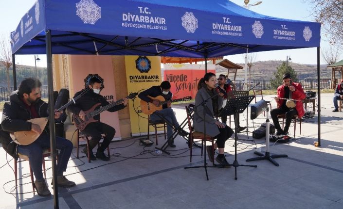 Diyarbakır Büyükşehir Belediyesi, korona virüs tedbirleri nedeniyle uygulanan sokağa çıkma kısıtlamasından dolayı hafta sonlarını evlerinde geçiren vatandaşlara moral vermek için düzenlediği ’Küçede Sanat Var’ etkinliğini Eğil ilçesinde vatandaşlarla buluşturdu.