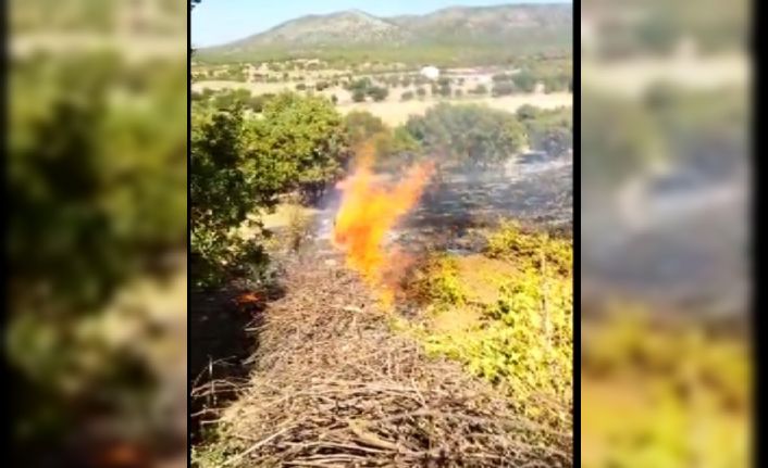Diyarbakır’ın Kulp ilçesinde çıkan yangında, 4 dönüm bağ alanı zarar gördü.