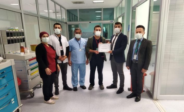 Daha sonra Başhekim Dr. Fesih Uyan ve Sağlık Bakım Hizmetleri Müdürü Levent Bayka, sağlık çalışanlarına başarı belgelerini verdi.