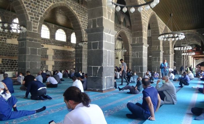 Diyarbakır’da korona virüs tedbirleri kapsamında uygulanan 17 günlük sokağa çıkma kısıtlamasında vatandaşlar, cuma namazını sosyal mesafeye uyarak kıldı.