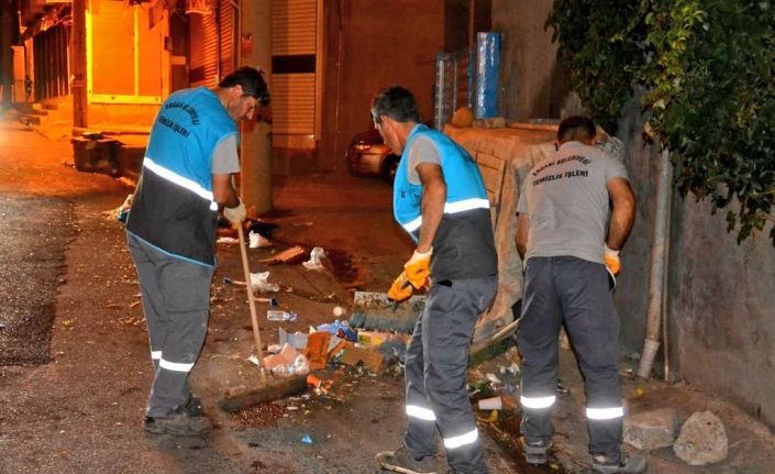 Diyarbakır’ın Ergani İlçe Belediyesi Temizlik İşleri ve Park Bahçeler Müdürlüğü ekipleri, ilçe genelinde yaptıkları temizlik ve hijyen çalışmalarını gecenin ilerleyen saatlerinde de sürdürüyor.