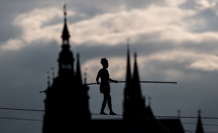 Fransız ip cambazı Tatiana-Mosio Bongonga, Çekya’daki Vltava Nehri’nin üzerinde 35 metre yükseklikte 40 dakika boyunca nefes kesen bir yürüyüş gerçekleştirdi.