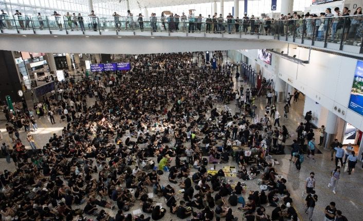 Hong Kong’da suçluların Çin’e iadesi yasa tasarısı üzerine başlayan protesto gösterileri devam ediyor. Son haftalarda şehirde şiddet olaylarının artması ve çetelerin hükumet karşıtlarına saldırması şehirde karışıklığa neden oldu. Protestocuların, Hong Kong Chec Lap Kok havalimanında düzenlediği protesto, 3’üncü gününe girdi. Güvenlik ekipleri ise gösterileri engellemek için “ekstra güvenlik önlemleri” alarak havalimanını umuma kapattı. Görevliler, gösterileri engellemek amacıyla, sadece ülkeden çıkış belgeleri tam olan kişilerin havaalanına girebileceği duyurdu.