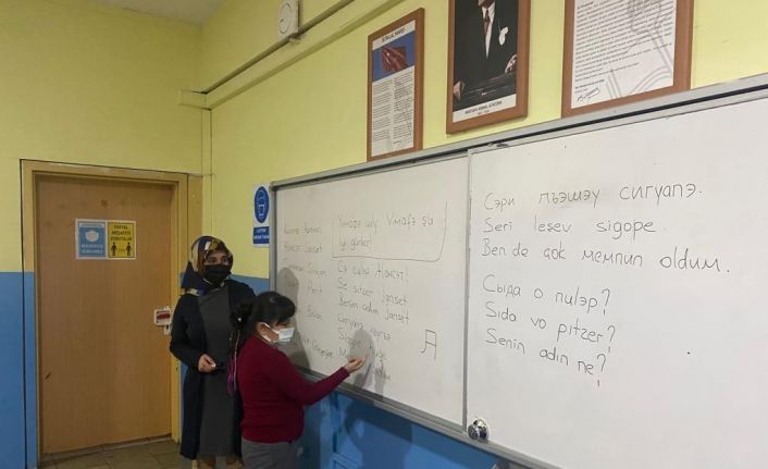 DÜZCE (İHA) – Kafkas Dernekleri Federasyonu Anadili komisyonu ve Düzce Adige Kültür Derneği’nin işbirliği ile Düzce Mustafa Kemal Ortaokulu’nda kiril alfabesiyle Çerkezce seçmeli dersi tercih eden 10 öğrenci derslere girmeye başladı.