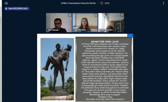 Panelin son konuşmasını yapan Dr. Öğretim Üyesi Sibel Küçükküllahlı ise, Çanakkale Savaşı’nın deniz ve kara savaşı olarak gerçekleştirildiğini ifade etti. İtilaf devletlerinin sadece donanmayla İstanbul’a ulaşabileceklerini düşündüklerini söyleyen Küçükküllahlı, Çanakkale Boğazı’nda ummadıkları bir direnişle karşılaştıklarını ve çok sayıda donanma gemilerini kaybetmeleriyle kara harekatı düzenlediklerini söyledi. Yaklaşık 16 ay süren kara savaşlarında büyük mücadelelerin yaşandığını ifade eden Sibel Küçükküllahlı, başarılı Osmanlı subayları Fevzi Paşa, Esad Paşa ve Gazi Mustafa Kemal Atatürk’ün orada bulunmasının her şeyi değiştirdiğini, savaşan düşman askerlerinin de Gazi Mustafa Kemal Atatürk’ün orada olmasının kendileri için bir talihsizlik olarak kabul ettiğini vurguladı. Umduklarını alamayan düşman askerlerinin geri çekilişleriyle övünmeye başladıklarını söyleyen Sibel Küçükküllahlı, Anafartalar Komutanı, T.C. Kurucusu Gazi Mustafa Kemal Atatürk’ü ve Çanakkale Şehitlerini anarak sunumunu sonlandırdı.