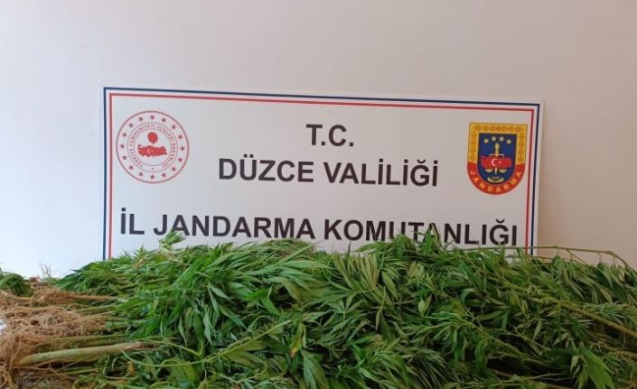 Düzce’nin Yığılca ilçesinde jandarma ekiplerinin yaptığı istihbarat çalışması sonucunda düzenlenen operasyonda 75 kök kenevir ve 9 kilo 200 gram kubar esrar ele geçirildi