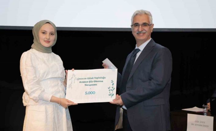 Düzce Üniversitesi İlahiyat Fakültesi ile Çevre ve Ahlak Topluluğu iş birliğiyle düzenlenen Arapça Şiir Okuma Yarışması’nda birinci olan Havvanur Çalışkan’a 5 bin TL ödül verildi.