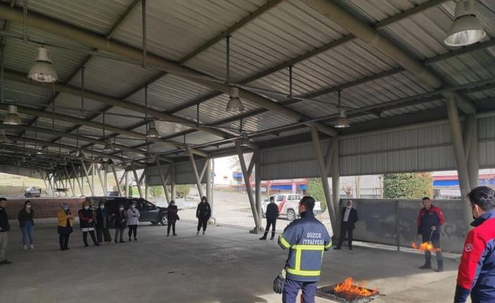 Düzce’de yeni yönetim oluşturarak ismini yenileyen Bahçehir A.Ş.’de görevli personeller yangın eğitiminden geçirildi. Düzce İtfaiye Müdürlüğü’nün verdiği eğitimde Bahçeşehir bölgesinde görev yapan bahçıvan ve apartman görevlileri yangın anında yapması gerekenleri öğrendiler.
