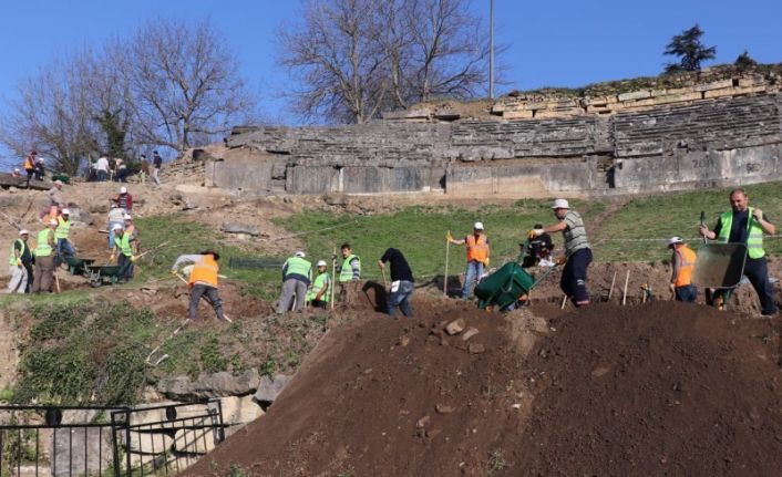 DÜZCE (İHA) – Düzce Belediye Başkanı Dr. Faruk Özlü, Konuralp Antik Tiyatro çevresinde devam eden kazıları incelemek üzere bölgeyi ziyaret etti.