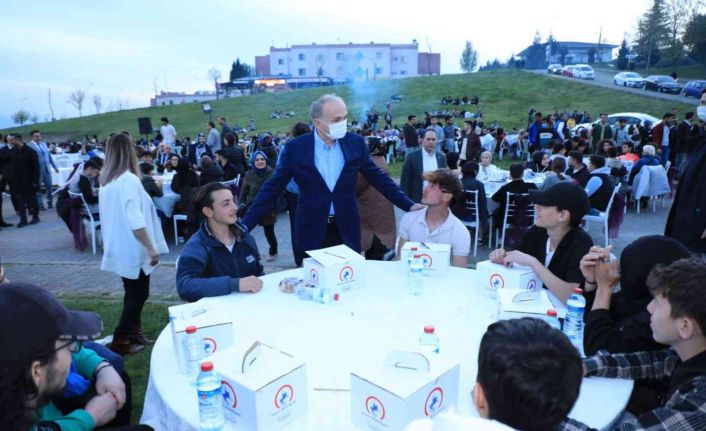 Bahçeşehir Etkinlik Alanı’nda düzenlenen Gençlik İftarı öncesinde gençlere hitap eden Düzce Belediye Başkanı Dr. Faruk Özlü, “İki yıldan bu yana pandemiden dolayı toplu iftar tertip edemedik. Kısmen de olsa pandeminin bitmesinin ardından gençlere iftar yemeği düzenledik. Bu akşam sizleri burada görmekten dolayı çok memnunum. İftar akabinde kıymetli bir sanatçımız sizlerle birlikte olacak. Hepinizi sevgiyle saygıyla muhabbetle selamlıyorum. Allah Kabul etsin” ifadelerinde bulundu.
