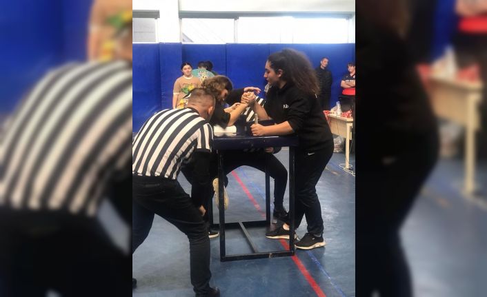 Düzce’de okul sporları gençler, yıldızlar ve küçükler bilek güreşi müsabakalarına 120 sporcu bileğini yarıştırdı.