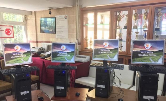 DÜZCE (İHA) – Düzce’nin Akçakoca ilçesinde bulunan Piri Reis Mesleki ve Teknik Anadolu Lisesi’nde öğrenim gören bazı öğrencilerin evlerinde bilgisayar olmadığı için eğitimlerini devam ettiremediğini gören okul yönetimi, okulda bulunan bilgisayarı öğrencilere vererek eğitime devam etmesini sağladı.