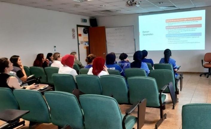 Sağlık Müdürlüğü Halk Sağlığı Hizmetleri Başkanlığı Sağlıklı Hayat Merkezi (KETEM) birimi ekipleri toplum tabanlı taramaları yaygınlaştırmak ve farkındalık oluşturmak amacıyla Organize Sanayi Bölgesi’ndeki (OSB) fabrikalardaki kadın çalışanlara yönelik kanser tarama programı ve bilgilendirme eğitimi yaptı. KETEM biriminde görevli Dr. Merve Hayriye Öztürk tarafından verilen eğitimlerde; kanserde erken teşhisin önemi, kanser türlerinin risk faktörleri, belirtileri, tanı ve tedavi yöntemleri, kanserden korunma yolları, sağlıklı yaşam konularında bilgilendirmelerde bulunuldu.