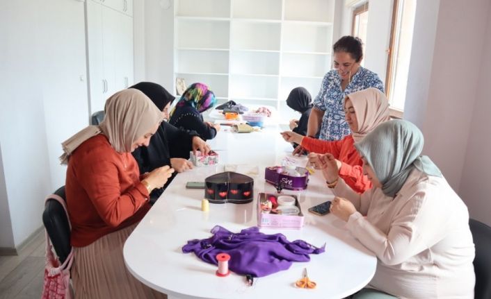 Mahalle konağı içerisindeki oyun odasında çocuklar oyun oynarken anneleri de kurslara katılarak el becerilerini geliştiriyor.