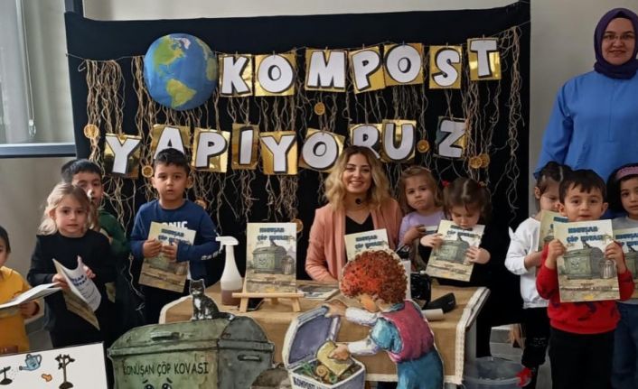 DÜZCE(İHA) –Düzce Cevap Şahin Anaokulu öğrencileri yazar Ece Lençper Karadağ ile buluştu, çöpe giden yiyecek kabuklarının, sebze ve meyve atıklarının toprağı zenginleştirdiğini öğrendiler.