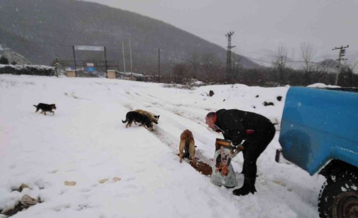 Yurdun büyük bir bölümünü etkisi altına alan kar yağışı Cumayeri ilçesinde de etkili oldu. Bir yandan yolları açan ekipler bir yandan da sokakta kalan hayvanlara mama bıraktılar.