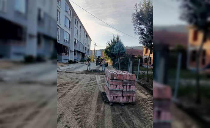 DÜZCE(İHA) –Düzce’nin Cumayeri İlçesinde alt yapısı tamamlanan yollarda asfalt ve kilit taş döşeniyor.