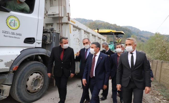 Düzce’nin köylerinde İl Özel İdaresi ekiplerince kış öncesinde asfaltlama çalışmaları aralıksız bir şekilde devam ediyor. Düzce Valisi Cevdet Atay da bir dizi ziyaretler gerçekleştirmek üzere gittiği Cumayeri ilçesinde çalışmaları yerinde inceledi. Cumayeri Kaymakamı Haluk Çakmak ve Belediye Başkanı Mustafa Koloğlu ile birlikte Dokuzdeğirmen ile Hamascık köylerini birbirine bağlayan yolda başlatılan asfalt çalışmaları hakkında bilgi alan Vali Atay, çalışmalarda görev yapan personele de kolaylıklar diledi.