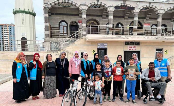 Kahramanmaraş merkezli depremlerin ardından yaralar sarılmaya devam ediyor. Yaşanan deprem afetinin hemen ardından harekete geçip bölgeye giden Düzce Müftülüğüne bağlı ekipler Düzceli hayırseverlerin yardımlarıyla Kahramanmaraş’ın Elbistan ilçesinde ki ihtiyaç sahibi vatandaşlara akülü sandalye, konuşma cihazı, yatak, çocuklara bisiklet ve tablet dağıtımı yaptılar. Çocuklar aldıkları bisiklette büyük mutlu oldular.