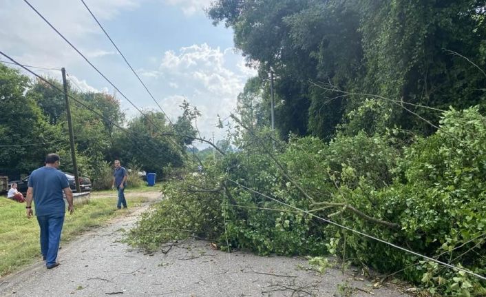 DÜZCE’NİN OZANLAR KÖYÜ’NDE RÜZGAR NEDENİYLE DEVRİLEN AĞAÇ KÖYÜ ELEKTRİKSİZ BIRAKTI.