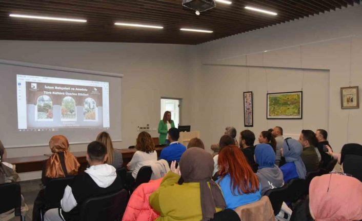 DÜZCE (İHA) – "Bağ, Bahçe, Çiçek" konferansında konuşan Doç. Dr. Parisa Güneş, Türk bahçelerinin içerisinde her zaman su objelerinin bulunduğunu ve soğanlı bitkiler ile lale kullanıldığını söyledi.