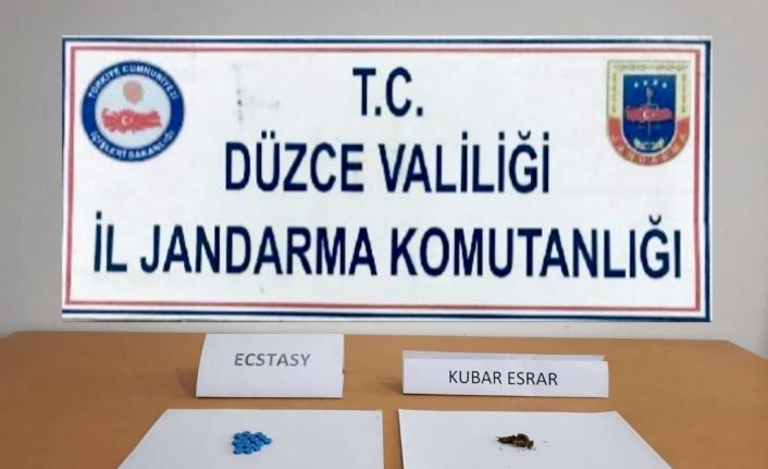 Düzce’de jandarma ekiplerinin yol kontrol uygulaması sırasında durdurulan otomobilin içinden bir miktar uyuşturucu madde bulundu.