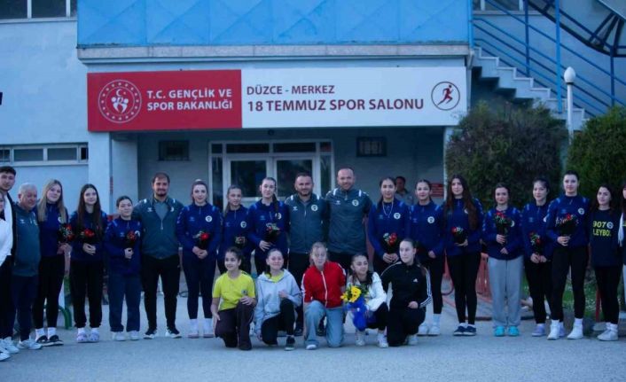 Şampiyonlar, müsabakaların ardından akşam saatlerinde Düzce’ye gelişlerinde 18 Temmuz Kapalı Spor Salonu önünde kulüp yöneticileri, sporcuları aileleri ve vatandaşlar tarafından coşkulu şekilde karşılandı.