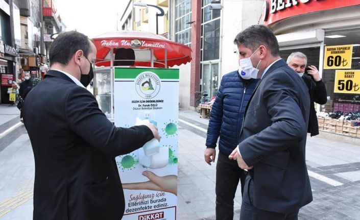 Düzce Belediyesi, sokaklara el dezenfektanları koydu