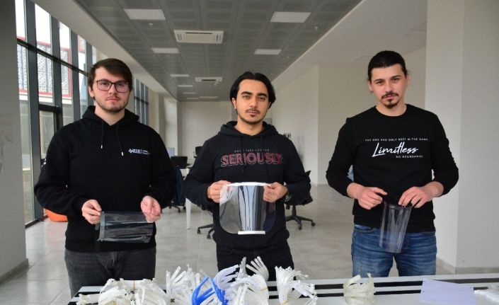 Düzce Teknopark Tasarım Prototipleme ve İnovasyon Merkezi’nde 5 adet 3 boyutlu yazıcı ile 24 saat boyunca üretim gerçekleştiren gönüllü üç öğrenci, öncelik olarak sağlık merkezlerinden gelen talepleri karşılamak için maske üretimi yaptıklarını söyledi. Düzce Üniversitesi İdari ve Mali İşler Daire Başkanlığı’nın sağlamış olduğu ham madde desteği ile Düzce Üniversitesi Araştırma Uygulama Hastanesi’ne destek ve katkı vermek üzere maske üretimi gerçekleştirdiklerini ifade etti.