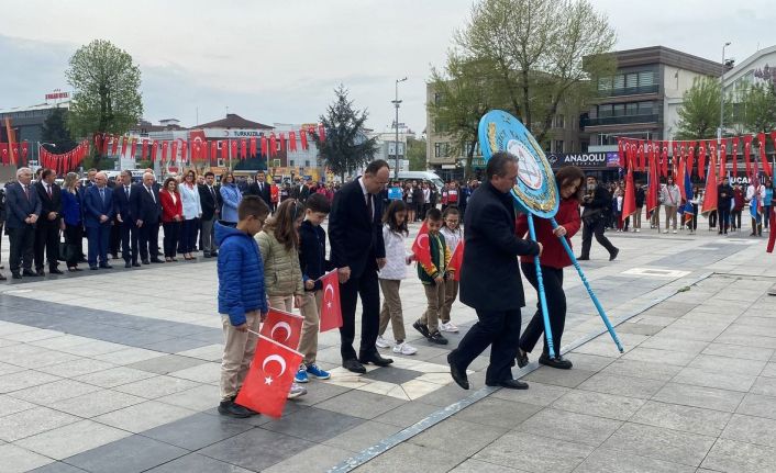 Düzce’deki kutlamalar Atatürk Anıtına çelenk konulmasıyla başladı. Milli Eğitim Müdürü Tamer kırbaç çocuklarla birlikte Atatürk Anıtına çelenk bıraktı. Ardından saygı duruşunda bulunuldu, İstiklal Marşı okundu.