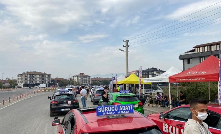 Korona virüs nedeni ile uzun bir süre uygulamalı direksiyon sınavları gerçekleştirilemedi. Alınan önlemler sonrasında direksiyon sınavları da başladı. İlk olarak Düzce’de 500 sürücü adayı 1 ay boyunca sürücü kurslarında aldıkları eğitimin ardından direksiyon derslerine başladı. Direksiyon derslerinde başarılı olan aday sürücüler, Cumartesi ve Pazar günleri uygulamalı direksiyon sınavlarına girdi. Birinci gün 250 ikinci gün ise 250 sürücü adayı Kalıcı Konutlar Bağlantı yolu ve Cumhuriyet Mahallesi’nde eğitime girdi. 35 dakikalık parkur süreçlerine başlayan adaylar hata yapması durumunda araçtan indirilerek sınavları sonlandırılarak, direksiyon sınavından kaldı. Parkuru hatasız sonlandıranlar ise başarılı bulundu.