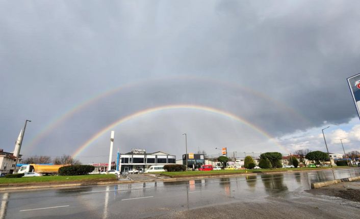 Düzce’de yağmurun ardından oluşan çifte gökkuşağı vatandaşları hayran bıraktı.