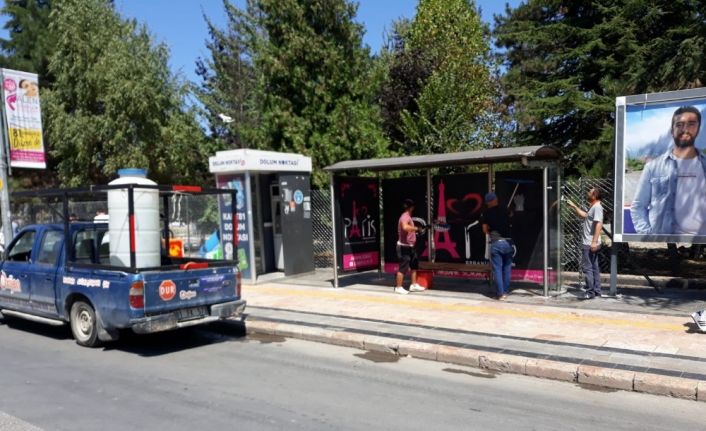 Periyodik aralıklarla sürdürülen duraklarındaki temizlik çalışmaları korona virüsü nedeniyle daha da sıklaştırıldı. Dezenfektanlı su ile yapılan temizlik çalışmaları ile vatandaşların duraklarda daha temiz bir ortamda ulaşımlarını sağlayacak otobüs ve dolmuşları beklemeleri sağlanıyor.