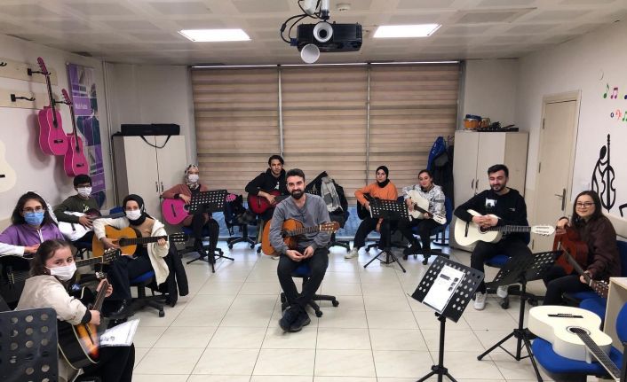 Gençlerin ruhsal ve sosyal anlamda gelişimlerine katkı sağlayan Merkez, gençlere yönelik kurslarına devam ediyor. Yoğun ilginin yaşandığı kurslardan biri olan gitarda ise 130 genç eğitim görüyor. Gitar eğitmeni Rıza Emanet tarafından verilen kurslarda öğrenciler, hem gitar çalmayı öğreniyor hem de serbest zamanlarını verimli bir şekilde değerlendiriyor.