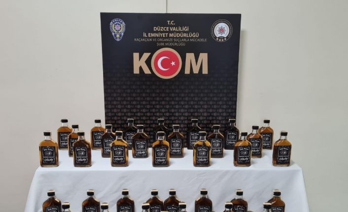DÜZCE (İHA) – Düzce’nin Kaynaşlı ilçesinde KOM polisinin bir büfeye düzenlediği kaçak alkol operasyonunda 39 şişe alkol ele geçirildi.