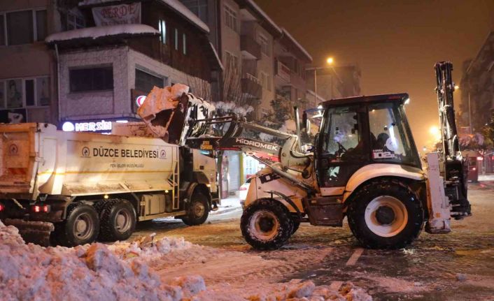 Meteoroloji İşleri Genel Müdürlüğünün yoğun kar yağışı uyarının ardından teyakkuza geçerek, günler öncesinden karla mücadeleye yönelik tüm hazırlıklarını tamamlayan Düzce Belediyesi, yoğun yağışların başladığı andan itibaren şehir genelinde başlattığı çalışmalarını sürdürüyor.