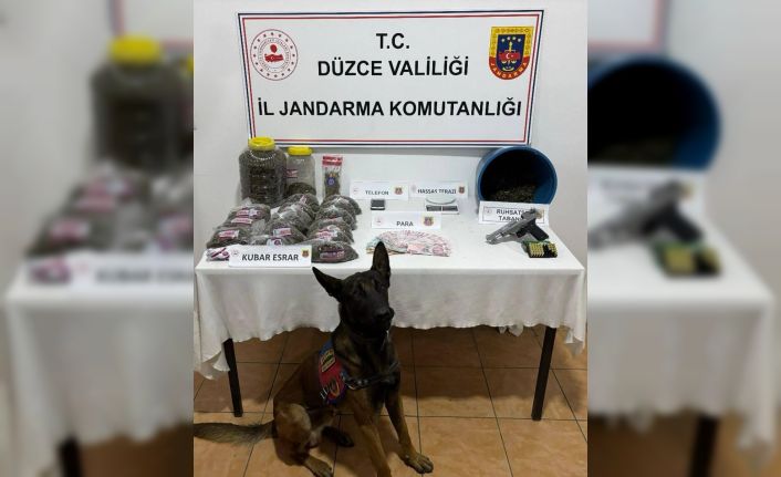 Düzce Cumhuriyet Başsavcılığı koordinesinde Akçakoca ilçesinde devam eden planlı çalışmalar neticesinde bir şahsın uyuşturucu madde kullandığı ve sattığı yönünde bilgi elde edilmesi üzerine arama yapıldı. Yapılan aramada 16 adet eşit gramaj da paket halinde satışa hazırlanmış ve diğer kaplar içerisinde toplam ağırlığı 3 bin 425 gram kubar esrar maddesi, çalışır hassas terazi, ruhsatsız tabanca ile 37 adet fişek ele geçirildi. Şahsın üst aramasında da suçtan elde edilen gelir olduğu değerlendirilen 15 bin 740 TL’ye el konuldu. Düzce Cumhuriyet Başsavcılığınca verilen talimatlar doğrultusunda suç eşyalarına el konularak şahıs gözaltına alındı. Olayla ilgili soruşturma devam ediyor.