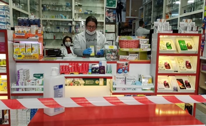 İlaç reyonuyla müşteriler arasında çekilen emniyet şeridi, eczaneye gelen müşterilerle çalışanlar arasındaki alanı birbirinden ayırıyor. İlaç reyonları dahil çalışanların olduğu bölümleri de emniyet şeridiyle korumaya alan eczanelerin uyguladığı yöntem hem çalışanlar hem de gelen hasta ve hasta yakınlarının kendilerini güvende hissetmesini sağladı.